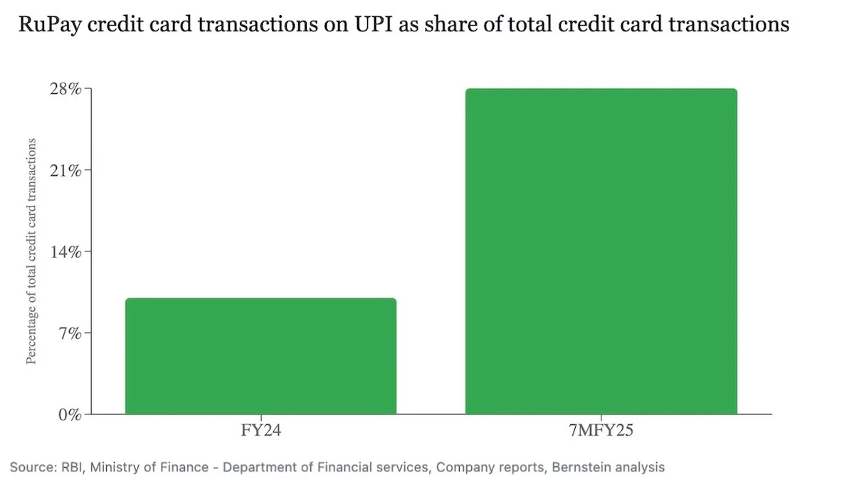 “Assuming UPI linkage remains exclusive for RuPay cards, RuPay is likely to emerge as the dominant network for credit cards,” a Bernstein report on Friday read.